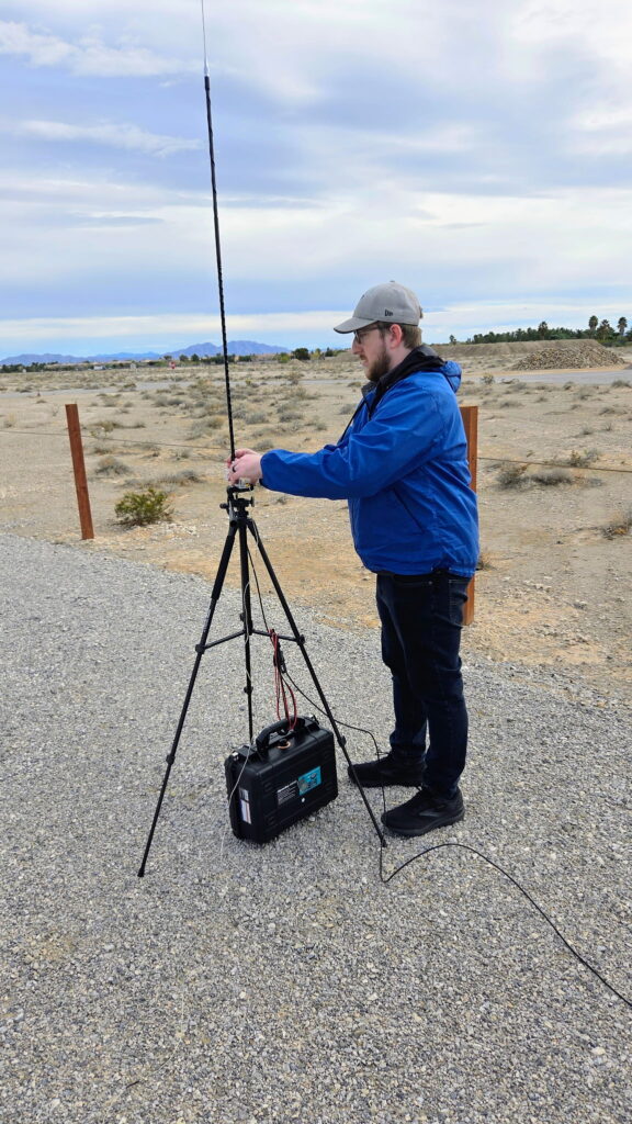 I flew Spirit Airlines to Las Vegas from Chicago, so I was limited to only a personal item. I ended up bringing my QMX+, a 4.5 Ah LiFePo4 battery, and my hamstick tripod adapter. Notable things I did not have the room to bring include a tripod, antenna tuner, and antenna.