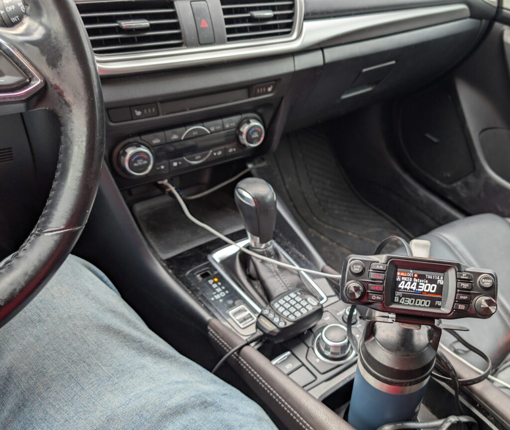 For mobile, I use a Yaesu FTM-200DR in my vehicle. This is paired with a mag mount antenna on my car’s roof. This radio has the CAP mod as well.